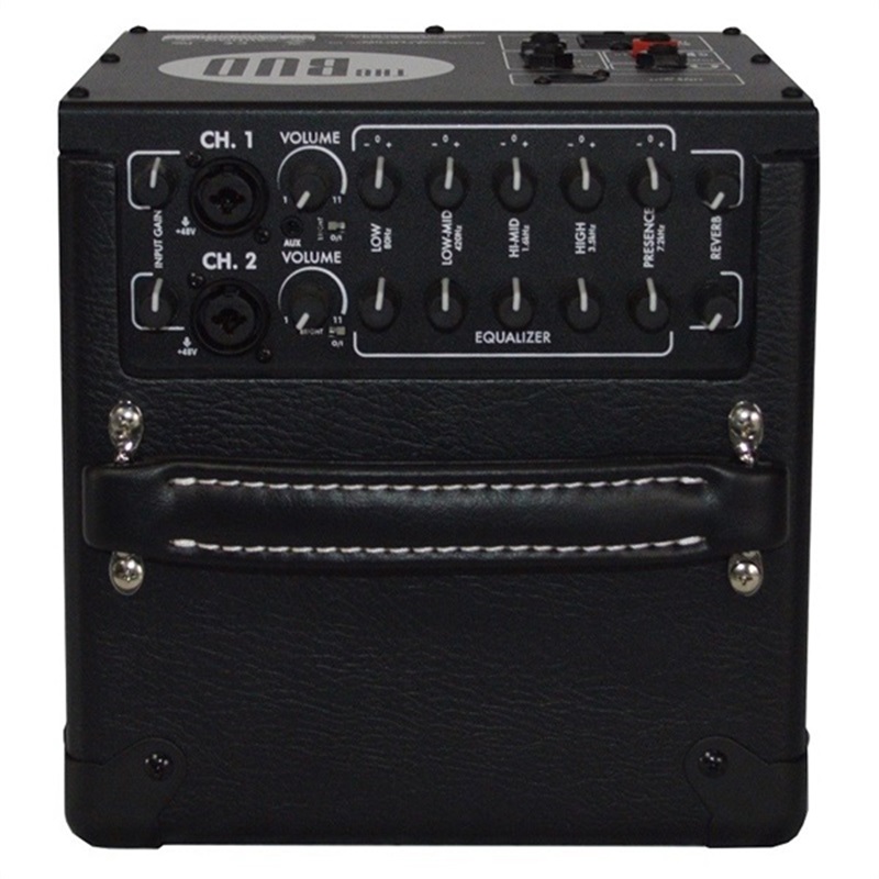 The Bud SIX最大の特徴は2チャンネル独立構成です 。ギター用のCh.1に加え、Ch.2にも同じ5バンドEQ・リバーブ・48Vファンタム対応入力を備え、ギターとマイク、あるいは複数の楽器を同時に接続可能となっています 。これ1台でギター+ボーカルのデュオや、2本のギターデュオ演奏にも対応でき、小規模PAとしても機能する柔軟さが高く評価されています。 - フラッグシップ級の音質