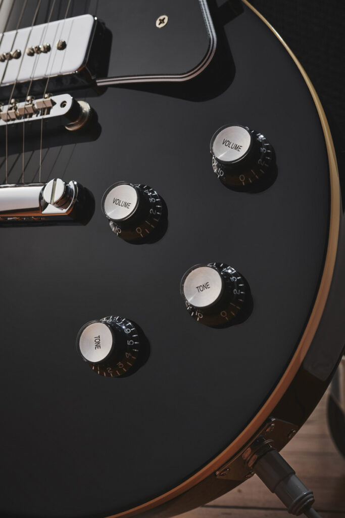 無ウェイトリリーフのマホ、P-90ソープバー、黒×クロームのルックス、ヘッド裏デカールという、説明できるディテールが全部乗っているので、ファンには理由のある価格帯になっています。一方で、P-90の抜けとスリムテーパーのおかげで、ライブギタリストが普通に現場に持ち出しても困らない仕様になっているのがこのモデルのうまいところ。