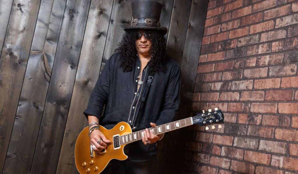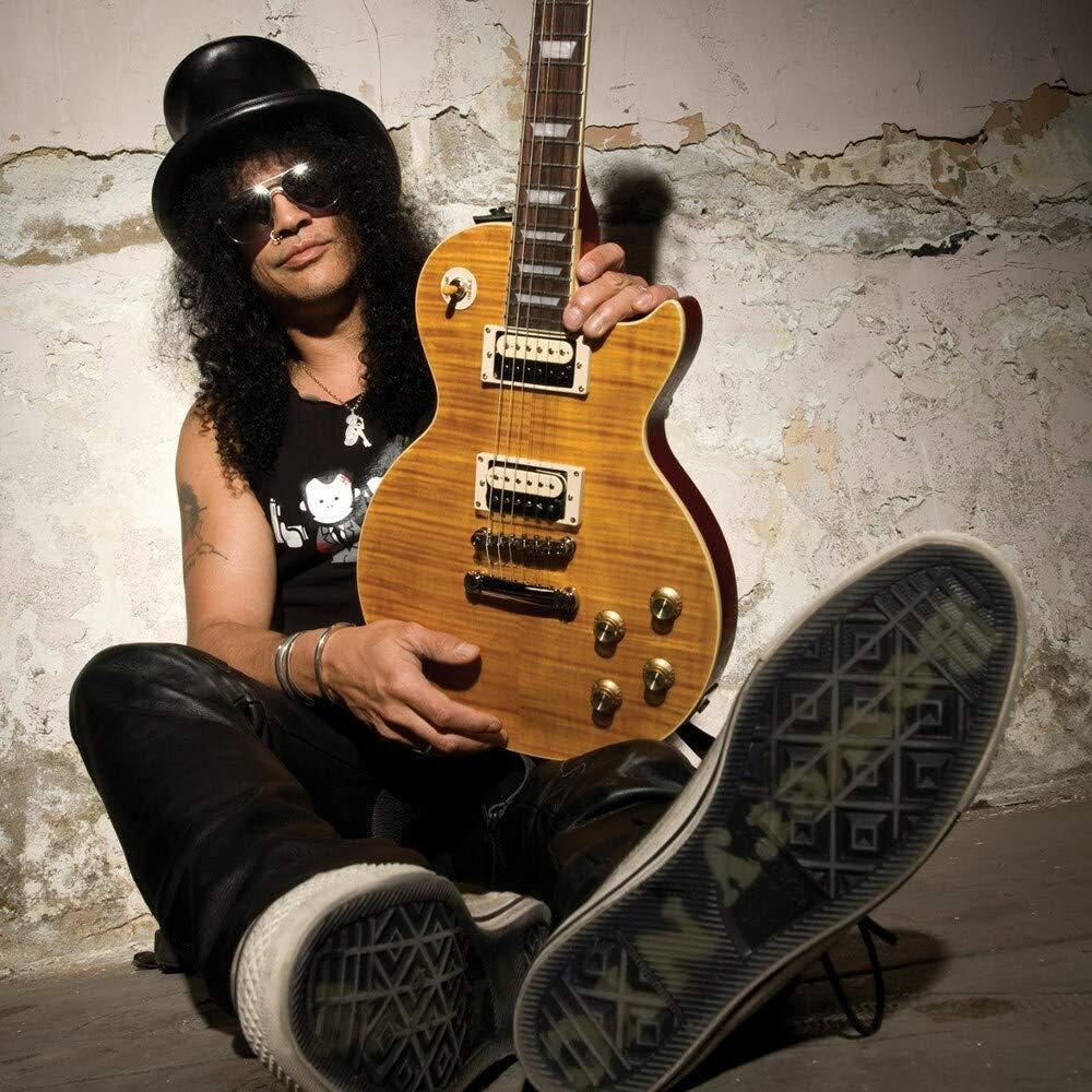 シルクハットにティアドロップのサングラス、そして低い位置に構えたレスポール。ロック・ギターのアイコンとして、世代を超えて世界中のギタリストからリスペクトを集め続ける