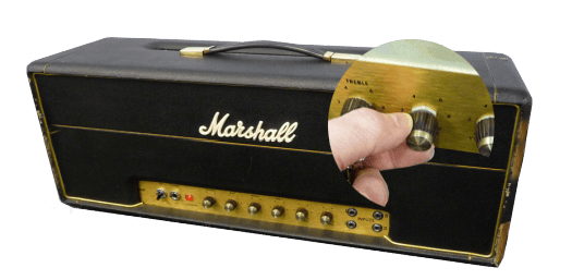 銀色のトーレックスに身を包んだこのアンプは、従来のプレキシ系マーシャルとは異なる独特の回路設計を持っています。プリアンプ部にダイオード・クリッピング回路を内蔵し、さらに非常に効きの良いパッシブEQを搭載しているため、従来のマーシャルよりも深く、かつダークで滑らかなディストーションを得ることができました。
