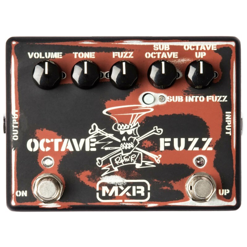 MXRとスラッシュが共同開発した、強烈な個性を持つシグネチャー・ファズペダルです。単なるファズではなく、1オクターブ下の音(サブ・オクターブ)と、オクターブ上のファズ音を追加できる多彩なコントロールを備えています。