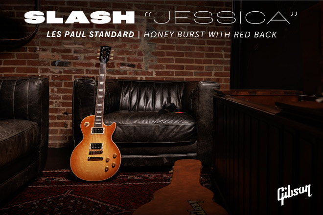 レコーディングの主役がクリス・デリグのレプリカであるならば、ライブ・ステージにおける絶対的な主役はこの「ジェシカ」の愛称で呼ばれる1987年製のGibson Les Paul Standardです。ガンズ・アンド・ローゼズがブレイクを果たした直後、ギブソンからスラッシュへと提供された2本のうちの1本であり、実はヘッド裏に「SEC(ファクトリー・セカンド=B級品)」の刻印があるという、なんともロックンロールな出自を持っています。